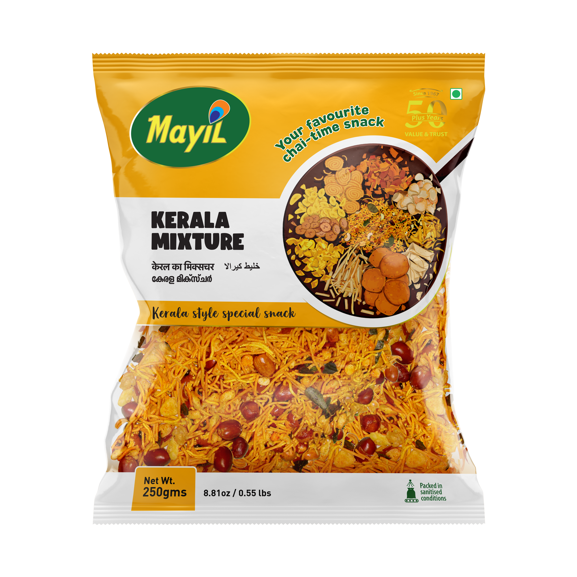 Kerala mixture is a salty and spicy tea-time snack in which spicy sev is mixed with fried peanuts, roasted split chickpeas, boondi, fried curry leaves and lastly coated with red chili powder and asafoetida.
