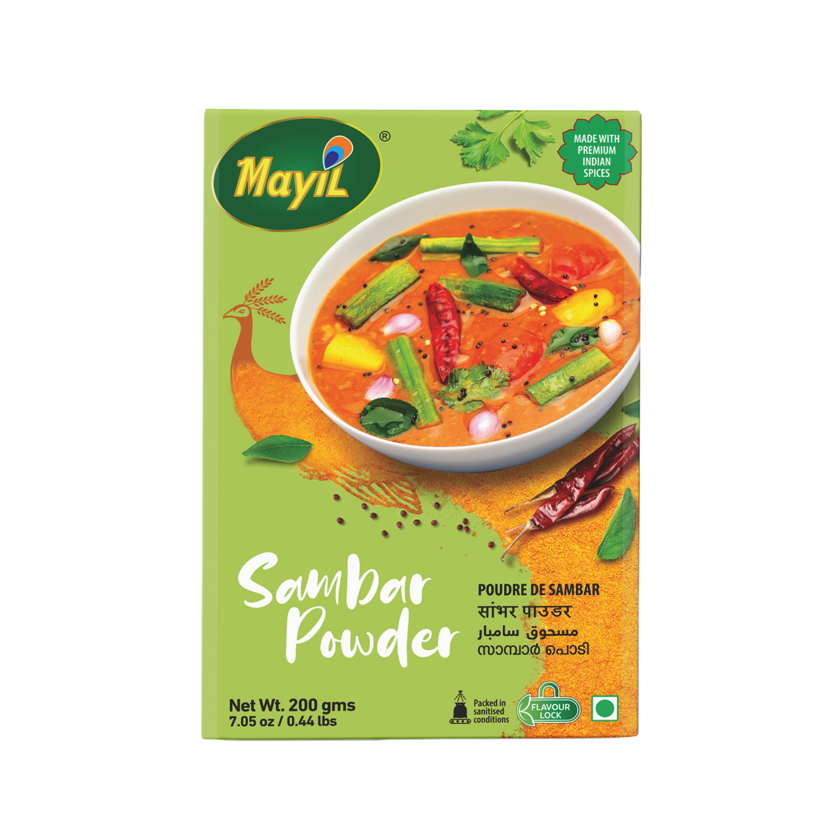 Sambar Powder is spiced powder is made with a blend of roasted coriander seeds, toor dal, chana dal, fenugreek seeds, mustard seeds, Curry Leaves, Byadagi Chilli and Many Type Of Spices Contain and few more which adds to this unique taste and exemplifies the taste sambar
